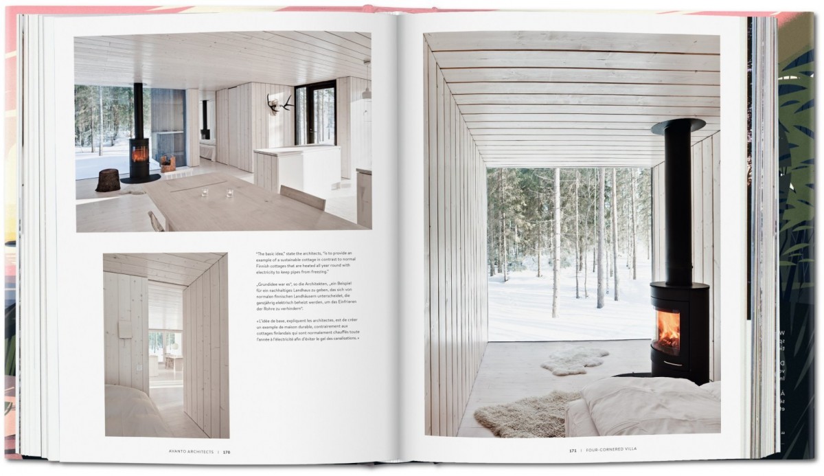 Este nuevo tÃtulo de TASCHEN, que combina un texto en profundidad con abundantes fotografÃas y las brillantes ilustraciones de Marie-Laure Cruschi, explora las oportunidades que este tipo particular de arquitectura ofrece al pensamiento creativo. La cabaña renuncia a los excesos y limita su intrusión espacial a cubrir las necesidades esenciales para vivir, al tiempo que se muestra respetuosa con el medio natural en el que se ubica y pone en primer plano las soluciones ecológicas. De este modo, las cabañas nos ofrecen algunas de las propuestas más creativas y con más visión de futuro de la arquitectura contemporánea, con Renzo Piano, Terunobu Fujimori, Tom Kundig y muchos otros jóvenes profesionales que trabajan en estos espacios refugio.